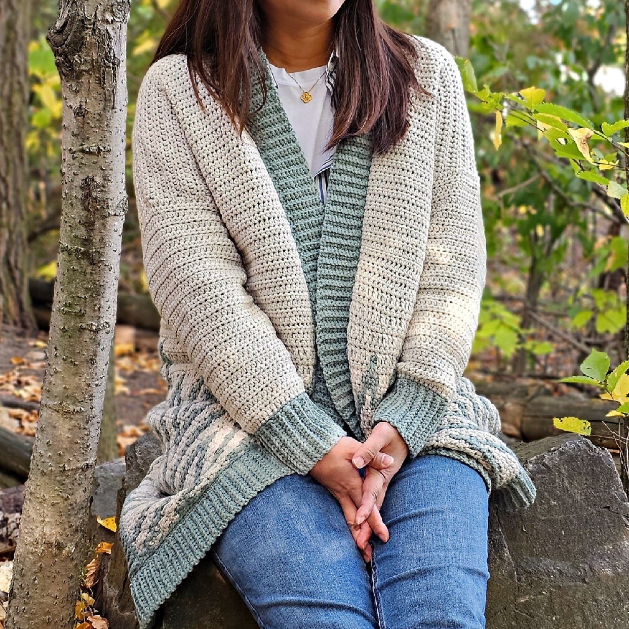 The Diamond Drift Cardigan pattern, designed by Michelle Moore of MJs Off The Hook Designs, is the perfect choice for those who love modern, oversized cardigans with intricate details.